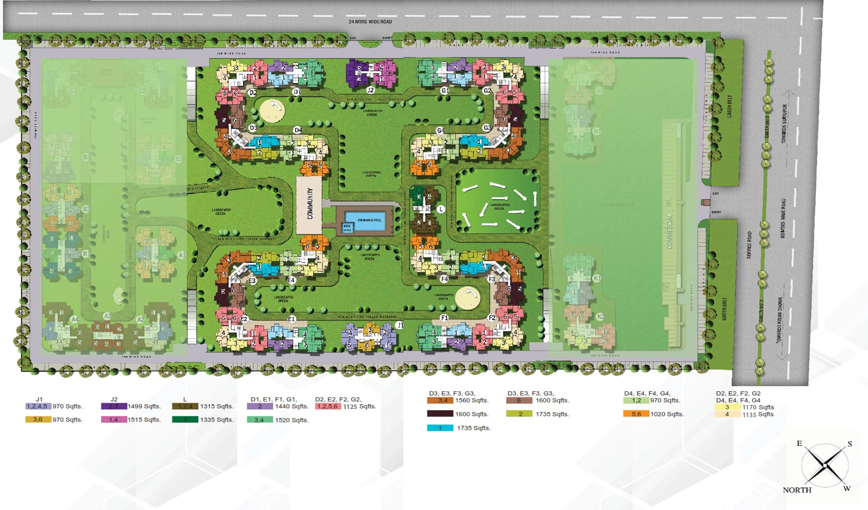 | 3 BHK + 3T + Store | 1735 Sq. Ft. | On Request |
